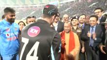 - भारत बनाम न्यूजीलैंड T20 अंतरराष्ट्रीय क्रिकेट मैच के दौरान खिलाड़ियों से भेंट करते मुख्यमंत्री जी